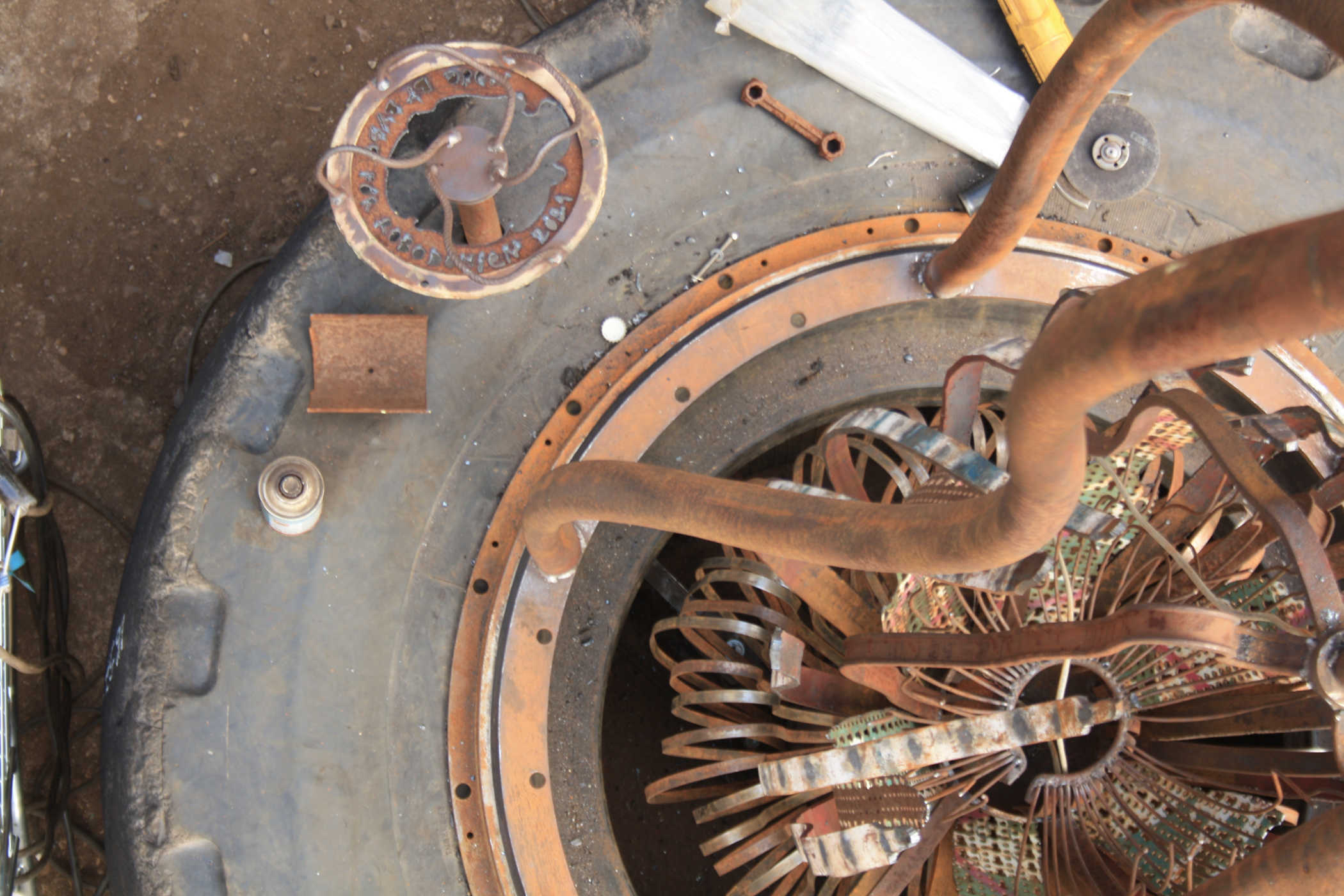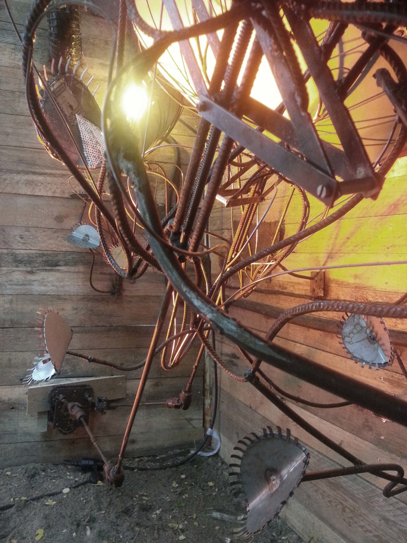 pieces of metals left aside, so called scrapped, old mecanial parts, geometric compositions, organic shapes and forms of nature are feeding his interpretation in each work to create static or in motion sculptures, objects or installations. It all finds life in art projects wether personal or in collaboration with other persons, artists or structures.