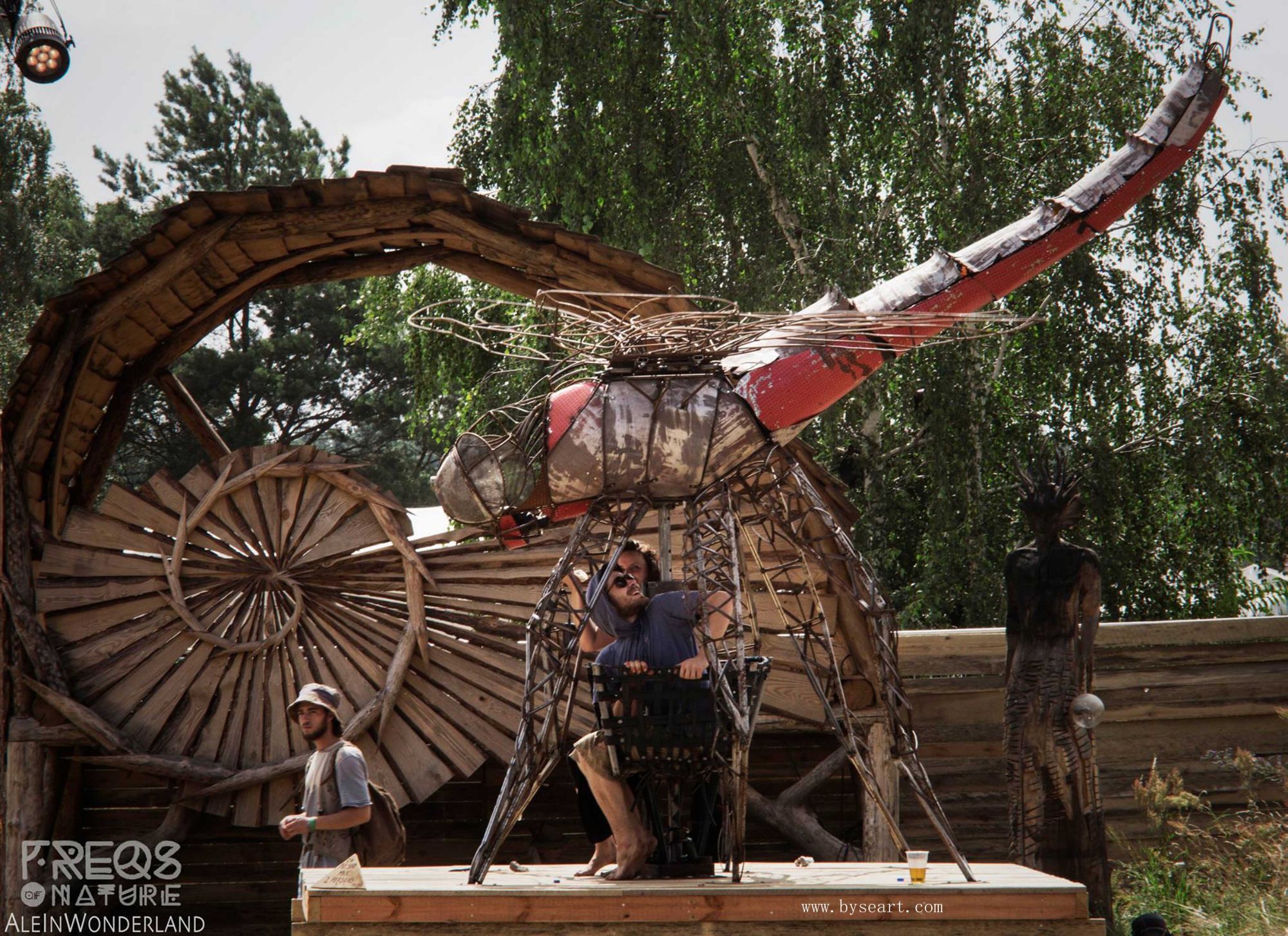Byse worked in various countries in the past seven years on diverse art projects among other creations . His biggest réalisations were made for “freqs of nature, peculiar art and music festival” near berlin in the last 3 years of its existence and for “Robodonien, metal art festival” in 2021 in Odonien art and cultural space in Cologne.
